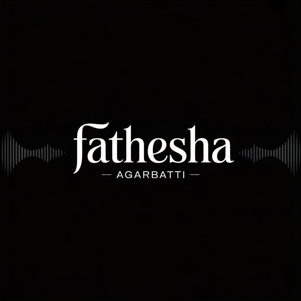 Discover the visually striking 2D logo design for FATHESHA, a leading name in the Entertainment industry. This modern logo showcases sleek, refined typography coupled with a minimalist black and white color palette, ensuring a bold market presence. Featuring the slogan 'AGARBATTI' in a delicate script, this design encapsulates the brand's core values while driving recognition and customer engagement.