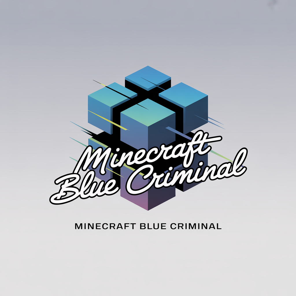 Introducing a modern and marketable 2D logo for 'Minecraft Blue Criminal,' crafted with a sleek aesthetic and refined formal script typeface. This original design stands out in the YouTube sector, featuring a premium UI background and bold full-color elements. The logo prominently includes the slogan 'Minecraft Blue Criminal' to resonate with the brand’s core values and personality, ensuring recognition and memorability.