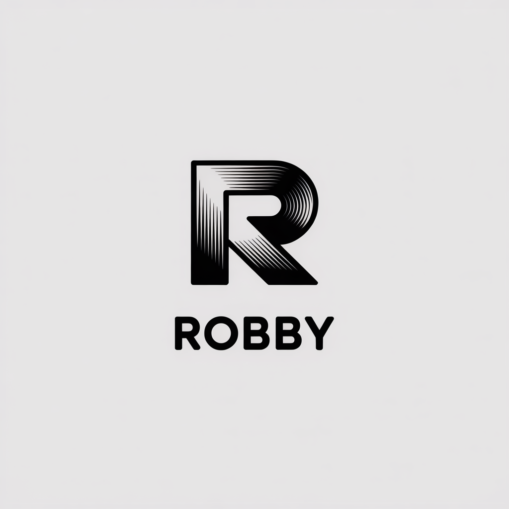 Introducing a unique and visually striking logo for 'Robby', a leading brand in the YouTube industry. This logo showcases the company name in bold typography, set against a subtle UI background that reflects the latest trends in the sector. With a focus on black and white color schemes, the design emphasizes modernity and marketability, ensuring it stands out among competitors.