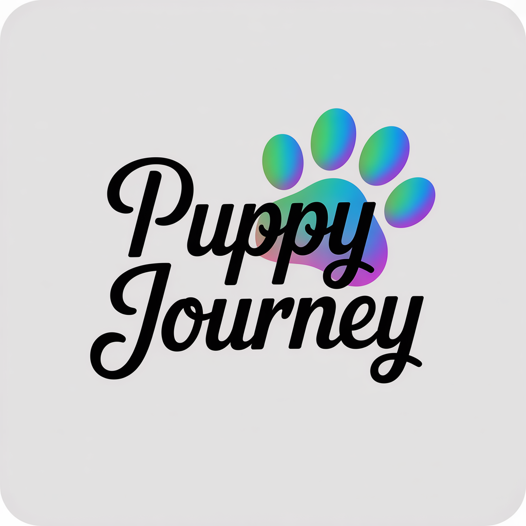 Discover a visually striking 2D logo for 'Puppy Journey', a standout brand in the YouTube industry. This sleek, modern design features a glowing effect and showcases the company name in a thin, refined formal script typeface, all set against a subtle, premium UI background that resonates with current YouTube trends. The use of full color as the dominant hue ensures a bold and memorable impression, helping to captivate customers and enhance brand recognition while maintaining originality.